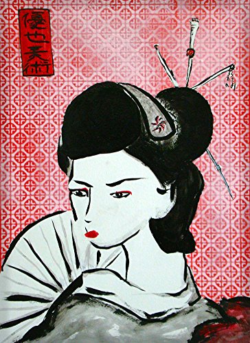 Rectangle Refrigerator Magnet - Geisha Girl on Patterned Red Background Mural Yuya Negishi YUYART
