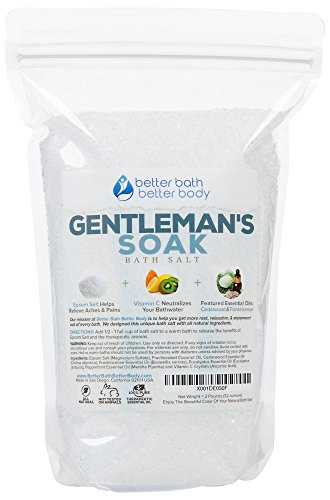 This NEW "Gentleman's Soak Bath Salt" Is Available While Supplies Last! Makes the perfect gift for men who love baths -- dad, husband, brother, uncle and all of the men in your life. Enjoy a bath soak for men made from all natural ingredients including USP Grade Pure Epsom Salt, 100% Certified Pure Essential Oils, Vitamin C Crystals. Includes 4 high quality certified pure essential oils - Cedarwood Essential Oil, Eucalyptus Essential Oil, Frankincense Essential Oil, Peppermint Essential Oil - together creates a manly bath salt aromatherapy blend for this all natural bath salt soak. Try this all natural bath salt for men save more when you buy more! Buy 2 Save 10% - Buy 4 Save 15% - Buy 6 Save 20% - Buy 8 Save 25% - Buy 10 Save 30% off your total purchase! Your discount will appear at checkout. Made in San Diego, California, USA from all natural ingredients with zero chemical additives, zero chemical fragrance, and zero chemical coloring. 0 |