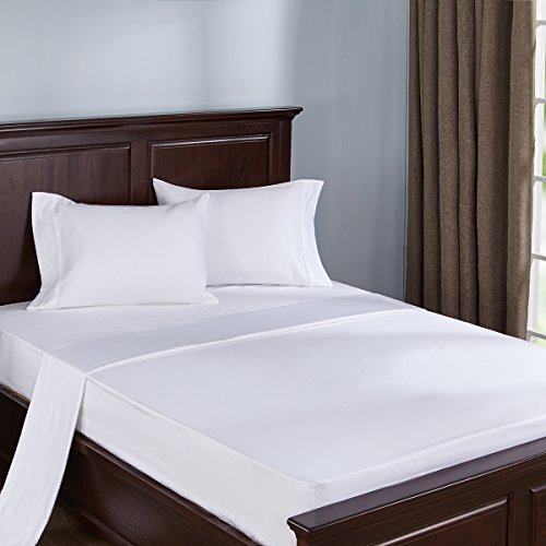 Puredown 100% Cotton Sateen 4 Piece Bed Sheet Set Deep Pocket, Queen Size, White
