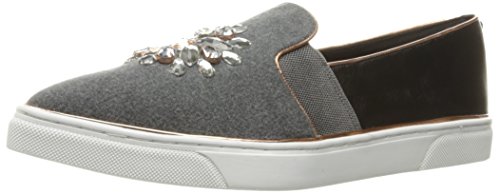 Product DescriptionFashion slip on pointed sneaker with crystal embellishment on modern textiles and print.0