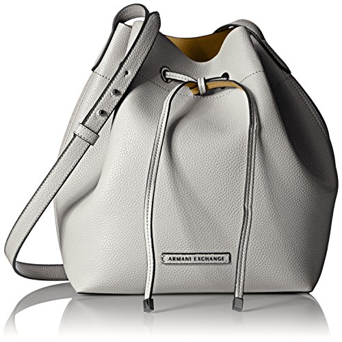 Bucket bag in faux leather featuring drawstring opening and logo patch at base