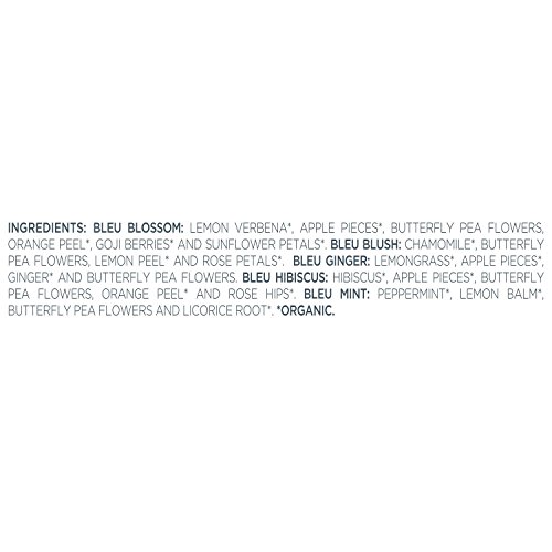 -. Feature : BLUE HERBAL TEA collection of sustainably sourced, all natural, caffeine-free blends, with no artificial colors or ingredients / BUTTERFLY PEA FLOWERS blended with organic herbs, fruits & flowers for an exotic visual experience of blue, green and violet that is matched by a symphony of taste in each beautiful, delicious cup / PRESENTATION BOX tea sampler has 20 assorted pyramid tea bag infusers, handcrafted to allow the delicate leaves to luxuriantly unfurl in hot water, producing a deliciously aromatic, flavorful cup / WRAPPED IN ELEGANT, embossed pattern gift box with a satin ribbon, open the lid to reveal a tea tasting menu with blend descriptions / DELIGHTFUL TEA GIFT SET offers a variety of premium gourmet teas, a most welcomed hostess gift or gift for tea lovers