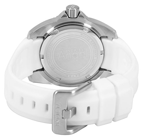 The glitz and glam of the runway can be yours with this spectacular Angel timepiece from the unbeatable Invicta! A 39 millimeter stainless steel case on a white silicone strap creates a chic and sleek look that will complement any style, while the mesmerizing silver-tone dial has a glittery finish for a pop of style that all women can rock, on and off the catwalk. This website is an authorized reseller of Invicta and each piece comes with the manufacturer warranty.Feature