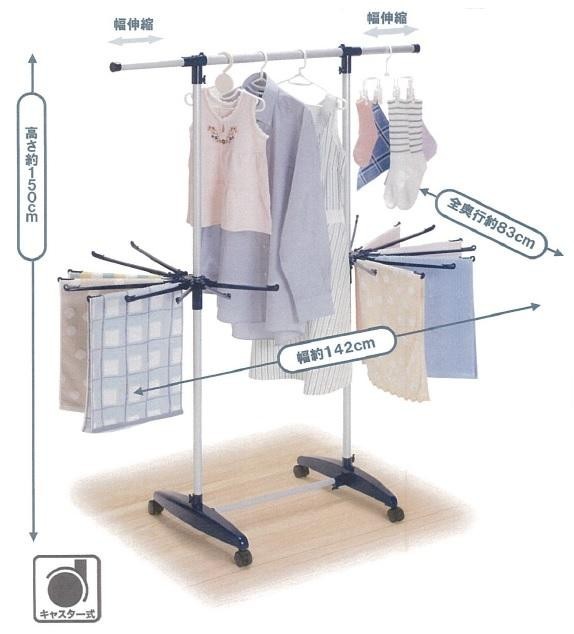 部屋干し専用のものほしスタンドです。本体には見た目も美しく丈夫なローレットパイプを採用。キャスター付なので移動もラクラク♪干し部の幅は伸縮式で、最大約142cmまで伸ばすことができます。 |