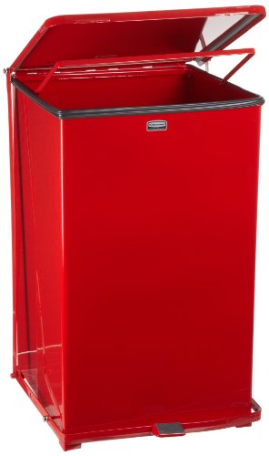 Rubbermaid Commercial Defenders Front Step-On Trash Can, 40 Gallon, Red Gloss