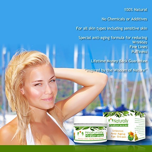 -. Binding : Health and Beauty -. Brand : Naturally Mediterranean -. EAN : 0634211009752 -. Feature : BEST RESULTS: 100% Natural 99% Organic Potent Anti-Aging Eye Cream from the Mediterranean. FOR ALL SKIN TYPES - ground breaking combination of quality Mediterranean ingredients. NO OTHER CREAM LIKE THIS ON THE MARKET! Vegan formula. Cruelty Free. / 12 OILS AND HERBS: Elemi, Galbanum and Spikenard uniquely combined with other intense AND POWERFUL oils and herbs to stimulate and SUPER-CHARGE your body's own COLLAGEN production. Firms the Skin by Promoting Cellular Regeneration. Reduces dark circles - wrinkles - puffy eyes / NO CHEMICALS: FREE from harmful parabens, glycol and alcohol. Ideal for a beauty regime you can use LONG TERM with no damaging results. Unlike chemically filled products which give a "quick-fix" with untold, irreversible damage. / FULL of powerful antioxidants to neutralise free radicals. Anti-inflammatory and moisturizing natural rejuvenating ingredients all renowned for their anti-aging, anti-wrinkle, antiseptic and antibacterial properties. Easily absorbed by the delicate skin around your eyes. / MONEY BACK GUARANTEE: We guarantee you'll get results or your money back! Customer Satisfaction is the MOST important. Our Customer Service is second to none. -. Label : Naturally Mediterranean -. Manufacturer : Naturally Mediterranean -. Model : Antiwrinkle15ml -. MPN : antieyewrinkle15ml -. PackageQuantity : 1 -. PartNumber : antieyewrinkle15ml -. ProductGroup : Beauty -. ProductTypeName : BEAUTY -. Publisher : Naturally Mediterranean -. Studio : Naturally Mediterranean -. Title : Natural Anti Aging Eye Cream | Intensive Eye Firming Cream For Fine Lines and Wrinkles, Dark Circles, Puffy Eyes | Unique Combination of 12 Oils and Herbs | Stimulates Natural Collagen | No Chemicals, Additives, Unnatural Preservatives nor Parabens -. UPC : 634211009752