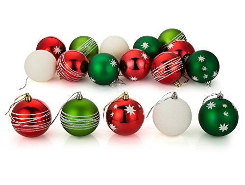 These best selling Christmas ball ornaments features traditional green, white and red colors