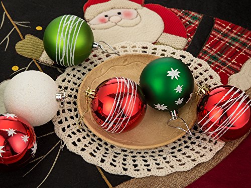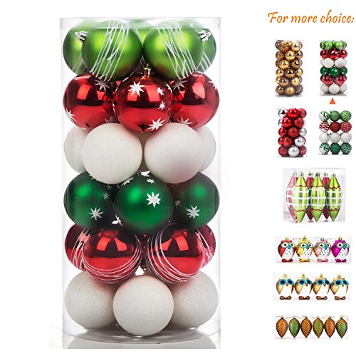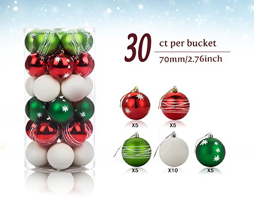 iPEGTOP Shatterproof Christmas Tree Decorations Ball Ornaments, Traditional Crafting Holiday Wedding Party Baubles Red Green and White, 70mm/2.8", 30 Set