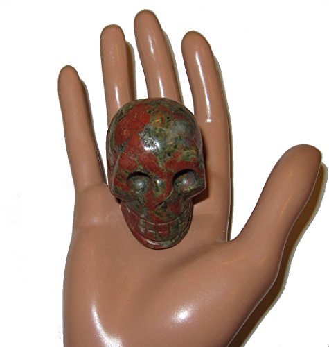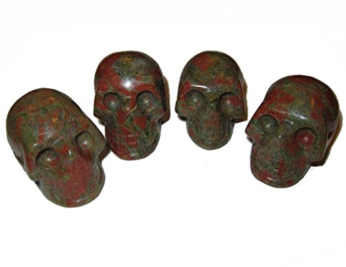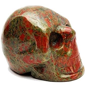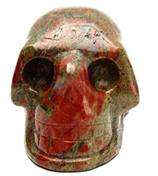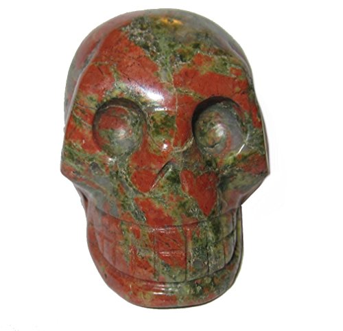 Your crystal carving is a genuine unakite skull! The stone is a dramatic blend of green and orange colors. Your new friend has a big smiling mouth showing teeth, inset eyes and nose, and a smooth top. Shiny and attractive, it may contain lines and grooves native to genuine gemstones. You get one unique skull per order from this featured elite hand picked lot.