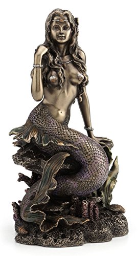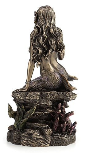 Sunbathing Mermaid Sitting on Rock Statue Sculpture