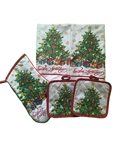 Christmas Tree Kitchen 5 Pack including 2 Hand Towels, 1 Oven Mitt and 2 Pot Holders