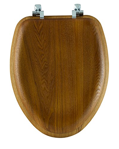 Mayfair Natural Reflections Toilet Seat with Chrome Hinges, Elongated, Natural Oak Veneer, 19601CP 378