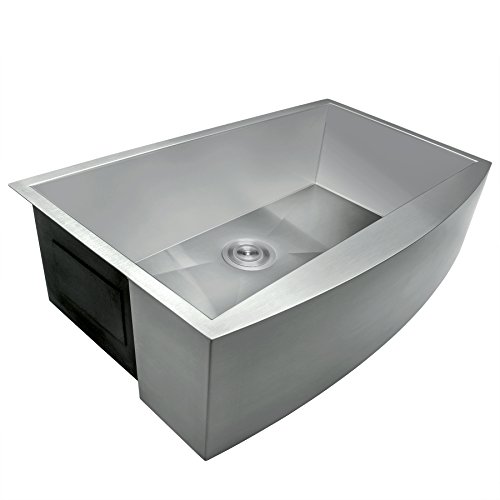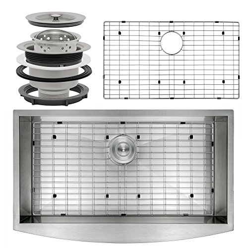 Perfetto Kitchen and Bath 33" x 22" x 9" Apron Undermount Handmade 18 Gauge Stainless Steel Single Basin Kitchen Sink w/ Dish Grid & Drain Combo