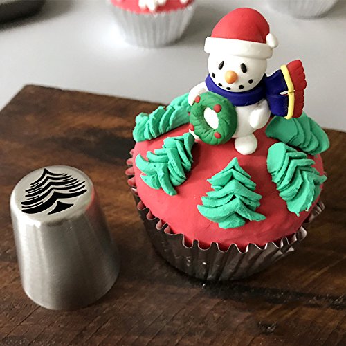 4 PCS Christmas Pastry Icing Piping Nozzles,Special Stainless Steel Russian Piping Tips Set,Cake Decorating Tools(1 Christmas Tree,2 Snowflake,1 Leaf)