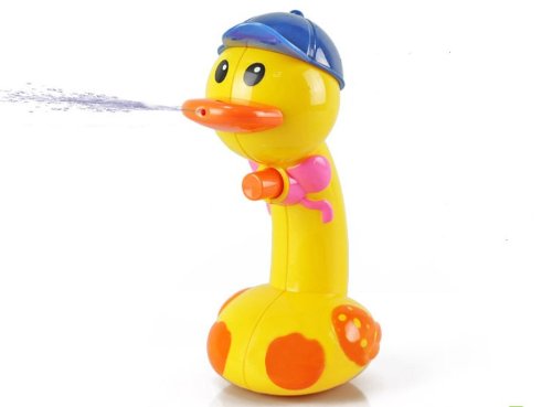 - Feature : A Big ducky water gun. / It can Measure water temperature. / The color of duck's hat will change when water temperature changed. / It is made of green plastics.Durable and safe. / Super fun for preschool children.Happy childhood.