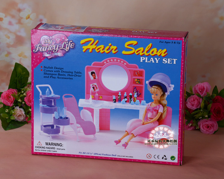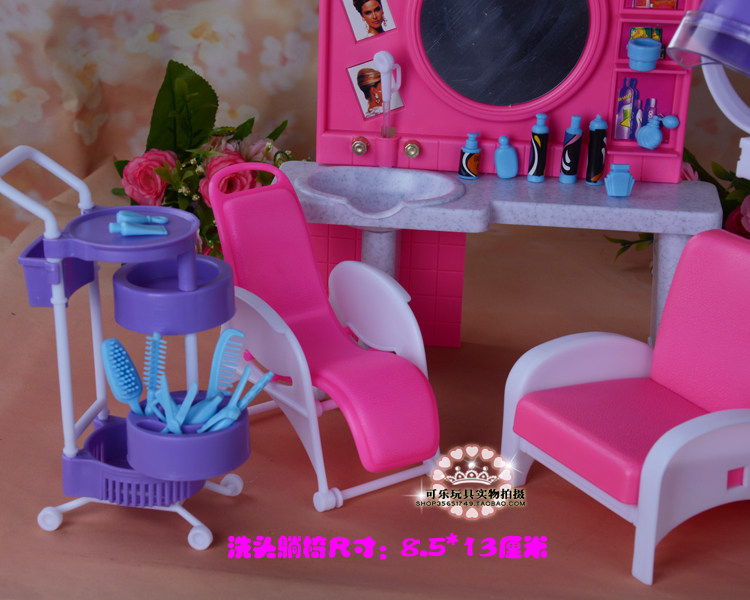 【Products】 Set includes: a perm chair, a rotating trolley, a recliner, a dresser, but also contains a number of combs, shampoo, perm and other small props, can be arbitrary furnishings, increased every family Fun, high degree of simulation.