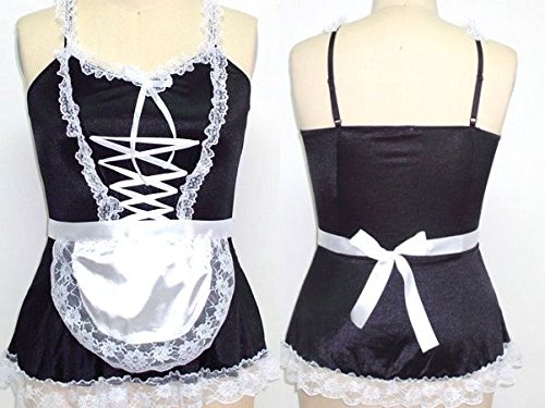 セット内容: メイド風ワンピース、エプロン、Tバック、ヘアバンド、アームバンド、太ももバンド