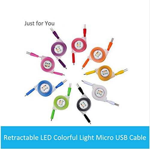 -. Feature : Compatible with most of micro USB port Android phone / This retractable cable solve the trouble of carrying different cables that easy to get twisted. / Sync Data and Charge Cable / Visible flowing speed indicator charging status / Lighting Design:This LED smile face will shine in different colors when connected with the USB port.