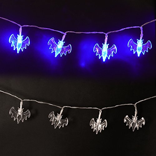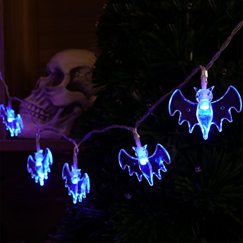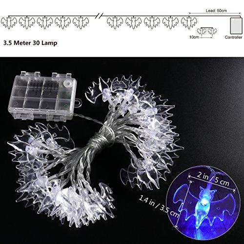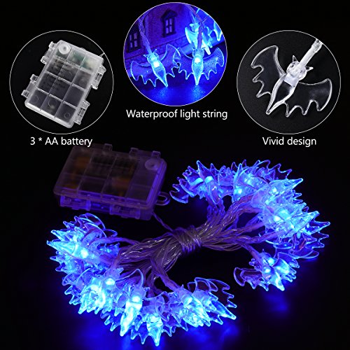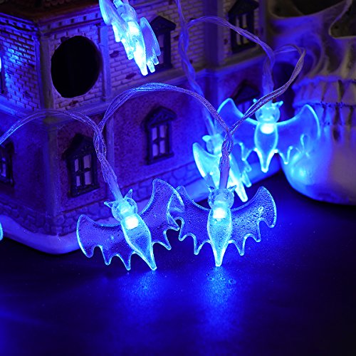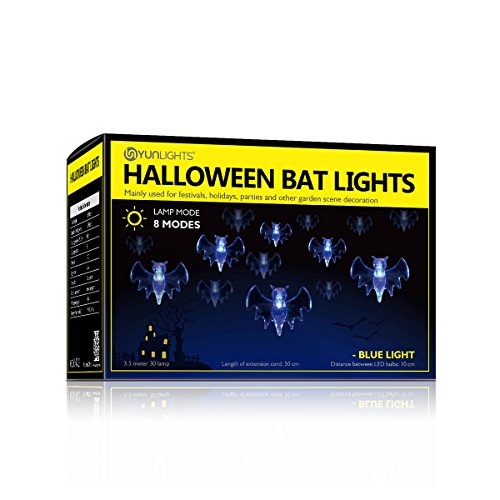 -. Title : Halloween String Lights, YUNLIGHTS 11.4ft 30 Blue Bats Lights Halloween Decoration Lights, Battery Powered