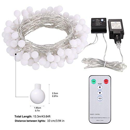 -. Title : Solar Outdoor String Lights, 18.7ft 40 LED Waterproof Ball Lights, 8 Lighting Modes Dimmable Remote Ball, Solar Powered Starry Fairy String lights for Garden
