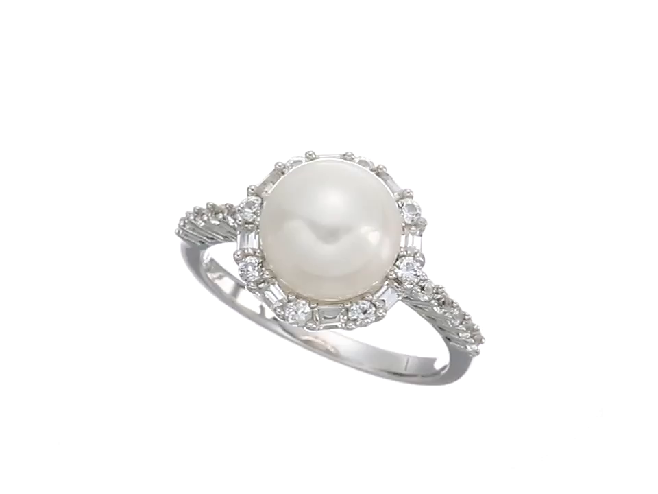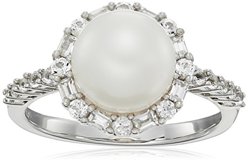 Sterling Silver Freshwater Cultured Pearl Halo with Created White Sapphire Accent Ring, Size 7