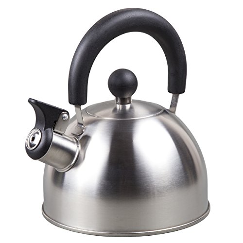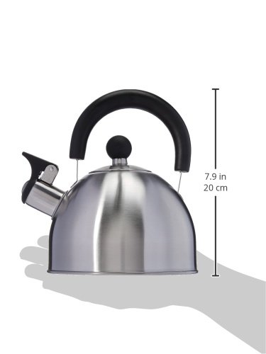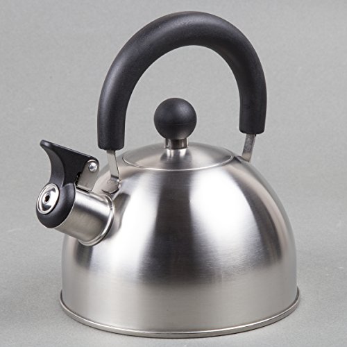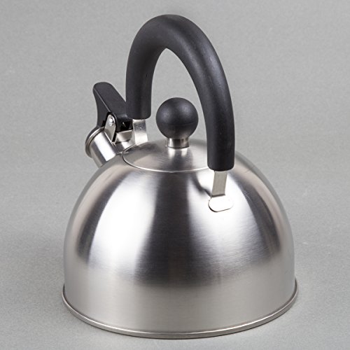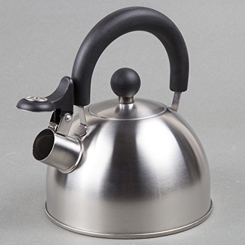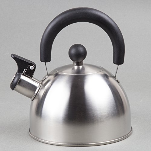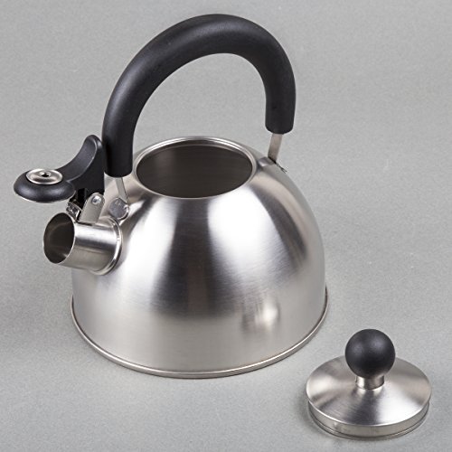 The Creative Home Simplicity Teakettle is manufactured of finely brushed stainless steel with a unique design that will look good in any style kitchen setting. Durable high quality stainless steel. Heat resistant handle and lid knob. 1.5 quart capacity. Flip-up whistle stays open for convenient pouring.Feature