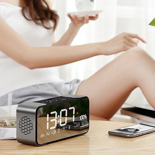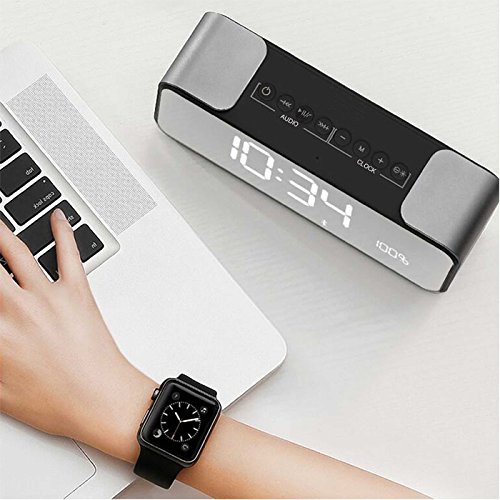 Specifications:? Transfer Distance: 10m/33ft Special Feature: Mini, Wireless, Portable? Support MIC SD Card: yes? Material: metal? Playback Function: MP3? Interface Type: AUX,USB, TF? Communication: Wireless Wired? Wireless Type: Bluetooth? Speaker Type: Surround? Battery: 4400mAh 5V? Loudspeaker Accommodation Mode: Button? Bluetooth style: 4.2? Display Type: Bluetooth, card, plug wire, radio, alarm clock