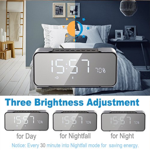 Tips:? NOTED: Speakers only connect one phone at the same time if you want to connect another one, you must disconnect one that used.? If you want to turn off the clock alarm, you have to double press the brightness/snooze button.? Package Contents: 1x Aluminium Wireless Bluetooth Speaker with black box 1 x USB charging cable 1x 3.5mm audio cable 1x User Manual of English