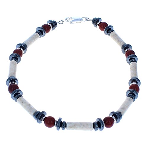 -. Title : Womens Red Jasper, Riverstone, Hematite (Hemalyke) & Sterling Silver Ladies Beaded Gemstone Anklet