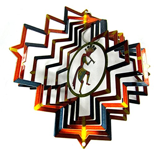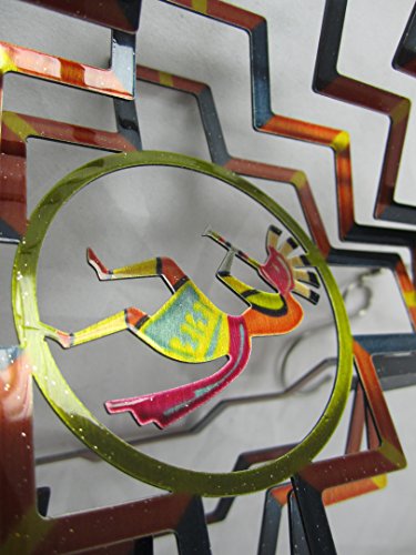 WorldaWhirl Whirligig 3D Wind Spinner Hand Painted Stainless Steel Kokopelli (6.5" Inch, Multi Color)