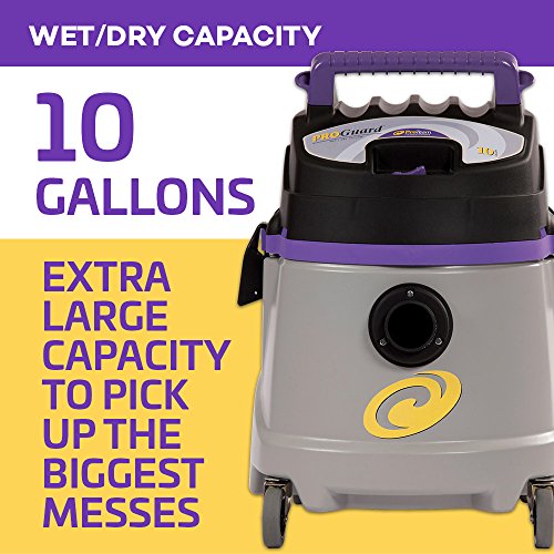The ProTeam ProGuard 10 Wet Dry Vacuum offers durable construction and powerful performance. With rugged construction, commercial-grade tools and hose, and 10-gallon tank, this wet dry shop vacuum will keep working even in the toughest conditions. It's ideal for a variety of industries including education, healthcare, hospitality, foodservice, retail, emergency/flood cleanup, and hard floor refinishing.