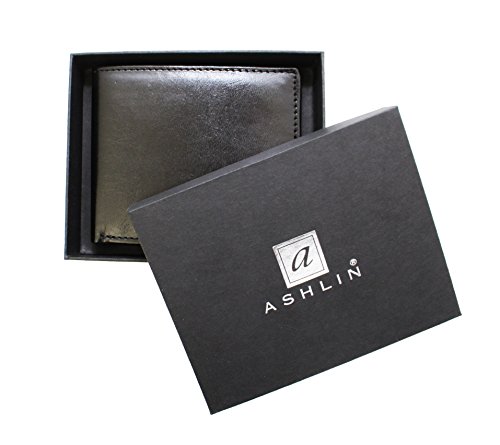 Binding : Apparel Product Description RFID SHIELD wallet: Mens bi-fold wallet with 10 credit card pockets; double billfold. ASHLIN RFID blocking wallets provide protection to your credit cards that have a Paypass feature or other cards with embedded IDs. Ashlin RFID products have a thin metallic layer built into the basic construction, which blocks the RFID information being skimmed. Secure your identity from roaming identity thieves! Credit cards now include a Radio Frequency Identification Chip (RFID chip) that broadcasts your private data using radio. All this data can be easily captured by identity thieves using RFID-reading devices. Our RFID Blocking wallets features a lined double billfold and 10 credit card pockets. This RFID blocking wallet provides protection for your credit cards that have a Paypass feature 0