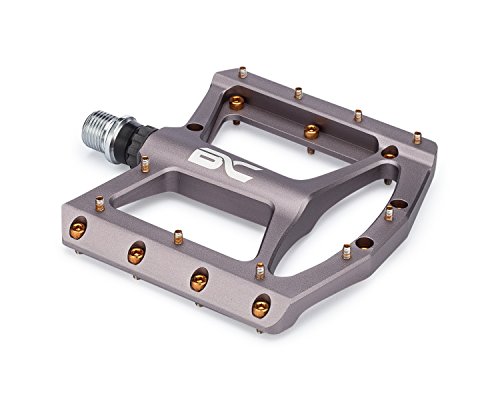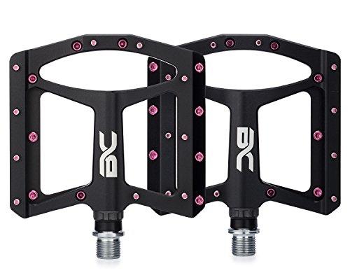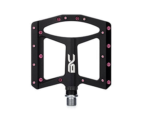 Take your cycling experience to a new level with the aluminium platform mountain bike pedals by BC Bicycle Company, dollar for dollar the best pedals on the market! CNC machined 6061 aluminium bodies reduce weight and add durability. 10 Replaceable steel traction pins per side bite in and stick your shoes to the pedal. 9/16 CNC machined Cr-Mo axles contribute to the durability and long lifespan of each pedal. Sealed bearings keep the elements out and contribute to the longevity and smooth rolling feel. The 110 X 108mm generously sized platform offers stability, comfort and grip while the low-profile design gives added ground clearance. At just 179g each, these pedals weigh less than many higher priced competing models.Feature