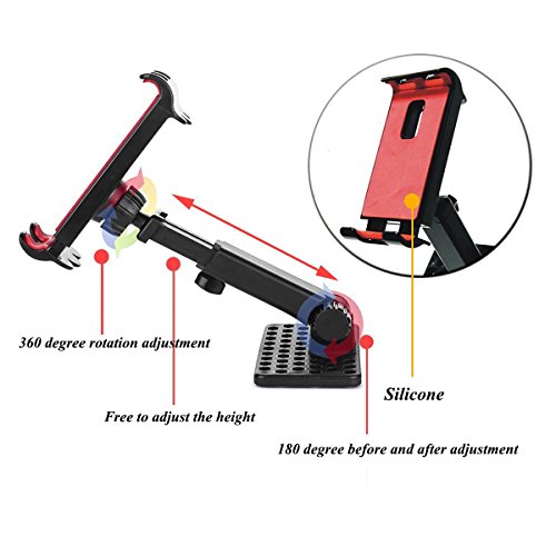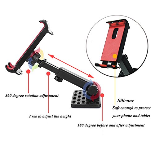 FEATURES: High quality material. Smooth surface with exquisite hand feeling. Tighten Stable. Effectively protect the phone and tablet with sponge pads. 360 degree rotatable,adjustable height. Easy to install and remove,no need tools.