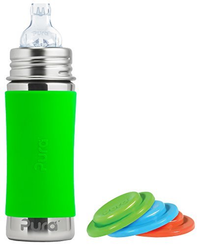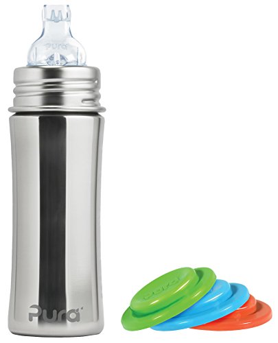 -. Feature : 100% Plastic free bottle compatible with silicone sip spout, straw, and sport top from Pura. Silicone sealing disks can be used to convert your bottle to use for breast milk storage or as snack cups for older kids. / Includes 11oz bottle with XL Sipper Spout plus a set of 3 silicone sealing disks in green, blue and orange for color coding / Crafted from safe, anti-bacterial, #304 stainless steel and medical grade silicone components which contain no plastic, BPA, EA, PVC or other toxins that could leach into beverage / Internal volume marks for easy measuring. / Dishwasher safe and shatterproof. Wide bottle opening makes cleaning with a bottle brush simple.