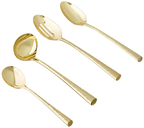 - Set includes sugar spoon, tablespoon, pierced tablespoon and gravy ladle