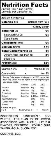 -. Feature : Pure Liquid Egg Whites that are 100% bio-available - Nature's highest quality source of protein helps you build muscle, feel full longer, and stay energized. / 26 grams of protein per serving, 0 grams cholesterol, 0 grams fat, 3 grams carbs per serving. / Pasteurized and filtered to be smooth and easy to drink straight! And because MuscleEgg is a whole food, you can use it in your favorite recipes for protein shakes, pancakes, french toast, waffles, egg bakes, crepes, burritos, egg scrambles, omelettes, protein bars, and anything else that calls for egg whites! / Also available in Original (plain), Organic (plain), Chocolate, Cake Batter, Vanilla, Chocolate Caramel, Mint Brownie, Strawberry, and Pumpkin Spice (limited edition) flavors. / Drink it. Cook it. Love it. Each gallon contains approximately 14 dozen egg whites. That's 168 egg whites!