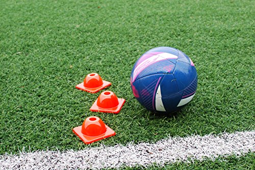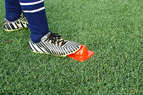 SET OF 10 SMALL CONES WITH A RUBBER LIKE TEXTURE AND WEIGHT means your soccer cones will not fly away when the wind picks up like traditional disc cones.