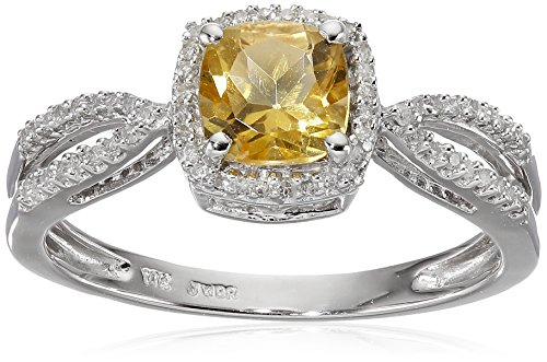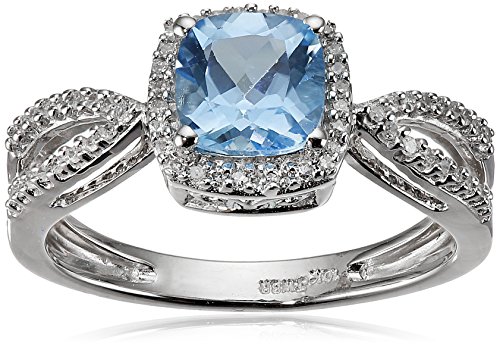-. Feature : Birthstone ring featuring diamond-accented split shank with faceted cushion-cut centerpiece