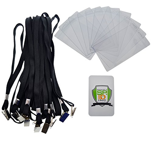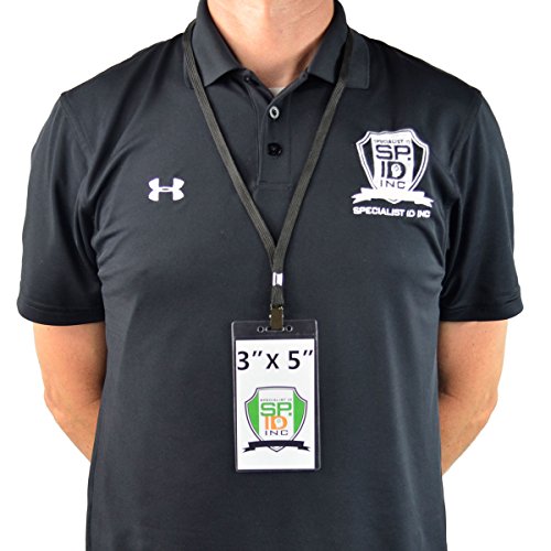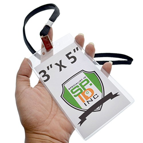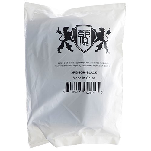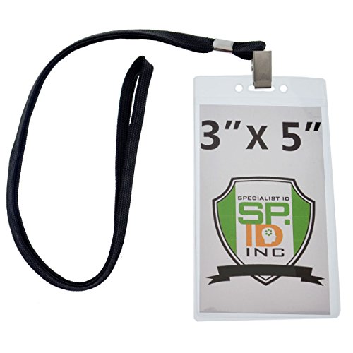 10 Pack - Large 3x5 Inch Large Clear Vertical Badge and Credential Holders with Lanyards for VIP Badges by Specialist ID (Black)