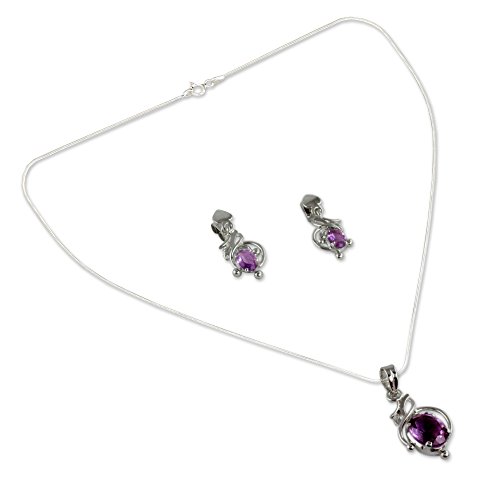 -. Binding : Jewelry -. Brand : NOVICA -. Department : womens -. Feature : An original NOVICA fair trade product in association with National Geographic. / Includes an official NOVICA Story Card certifying quality & authenticity. / NOVICA works with Alok Jain to craft this item. / Includes an original NOVICA jewelry pouch to keep for yourself or give as a gift. / A keepsake treasure designed to be loved for years to come. -. Label : NOVICA -. Manufacturer : NOVICA -. MPN : 81449 -. PackageQuantity : 1 -. PartNumber : 81449 -. ProductGroup : Jewelry -. ProductTypeName : FINEOTHER -. Publisher : NOVICA -. Studio : NOVICA -. Title : NOVICA Amethyst .925 Sterling Silver Rhodium Plated Jewelry Set 'Wisteria'