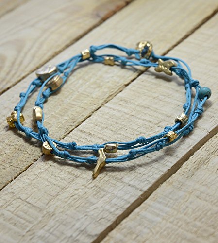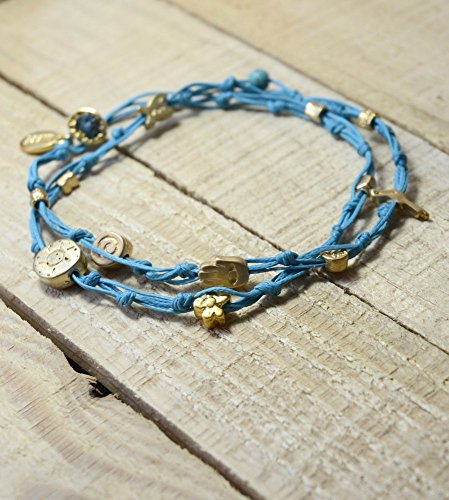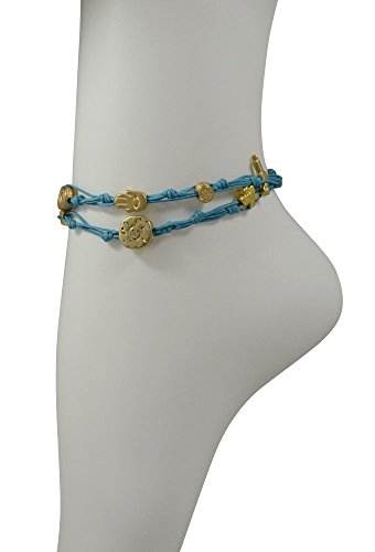 -. Binding : Jewelry -. Brand : MIZZE Made for Luck Jewelry -. Department : womens -. Feature : HANDMADE TURQUOISE WAX WIRE TIES ANKLET: The ties anklet is made with Turquoise wax cotton (durable) and various charms. / GOOD LUCK and PROTECTION CHARMS ANKLET: The charms include the Hamsa Hand for protection, Fish charm, Heart charm and Star. / 10.5" DOUBLE WRAP ANKLET for COMFORTABLE FIT: The double wrapped anklet is 21" in total length - so size 10.5" and wraps twice around the ankle. / QUALITY MATTE GOLD TONE CHARMS: The charms have a quality matte gold finish plating. / **100% FULL MONEY BACK GUARANTEE: We stand behind our brand and provide a 100% full Money Back Guarantee. If you are unhappy with your Charms Anklet, for any reason please contact us! -. Label : MIZZE Made for Luck Jewelry -. Manufacturer : MIZZE Made for Luck Jewelry -. Model : MZ6009TQG -. MPN : MZ6009TQG -. PartNumber : MZ6009TQG -. ProductGroup : Jewelry -. ProductTypeName : FASHIONNECKLACEBRACELETANKLET -. Publisher : MIZZE Made for Luck Jewelry -. Studio : MIZZE Made for Luck Jewelry -. Title : Turquoise & Gold Double Wrap Handmade Charm Anklet for Good Luck & Prosperity