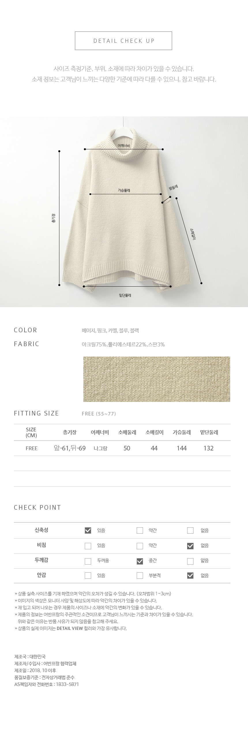 여유 있고 길지 않은 터들 라인은 접거나 펴서 자연스럽게 연출하기 좋고 힙을 덮는 긴 길이로 레깅스, 팬츠, 스커트 다 잘 어울리는 여리여리 끝판왕 니트랍니다^^
