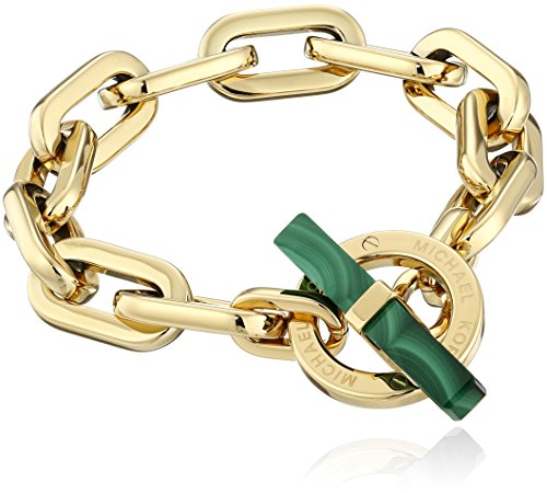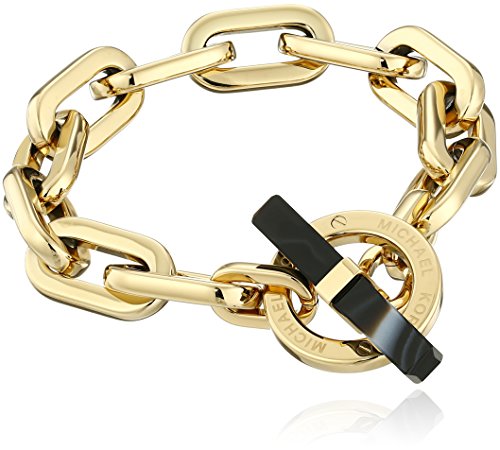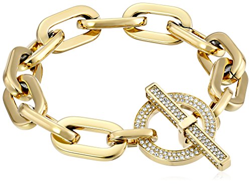 -. Feature : Gold-tone stainless steel bracelet with wide chain links and decorative oversize toggle / Imported