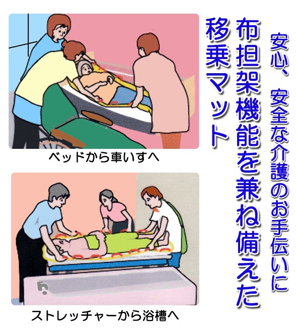 【使用上のご注意】※お一人(100kg未満)以上の搬送はできません。※必ず、二人以上がハンドルを持ち、使用してください。※非介護者の不安を軽減させるため、ゆっくりと持ち上げ移乗してください。※人間以外の搬送はできません。※高温(100℃以上)での洗浄、溶剤(シンナーなど)の使用はできません。