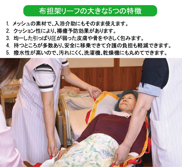 【商品名】介護用移乗マット(布担架) 「リーフ」 持ち手付き 洗濯機/乾燥機可