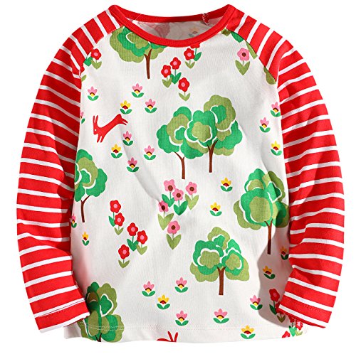 Fiream Girls' Cotton Crewneck Solid Long Sleeve T-shirt(175009TZ,2-3YRS)