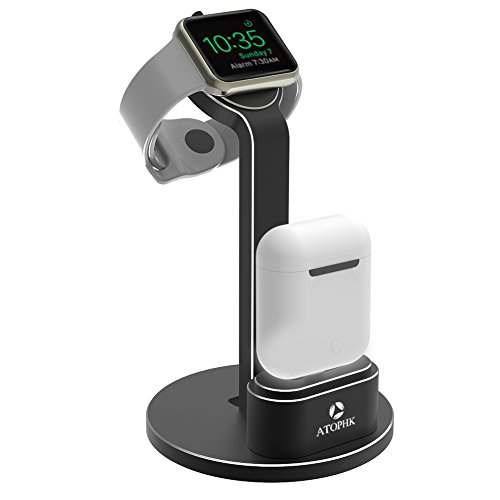 -. Title : Multifunctional Portable 2 in 1 Aluminum Charger Docking Station Cradle for iWatch Series Airpods Black