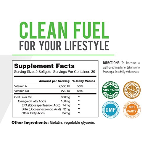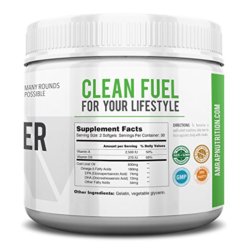OPTIMUM EFFECTIVENESS: AMRAP Nutrition's all-natural Cod Liver Oil is naturally high in omega-3 fatty acids and fat-soluble vitamins A and D to keep your body in peak health. Each 500 mg softgel helps to improve recovery time, decrease inflammation and reduce the risk of joint, tissue and tendon injuries.
