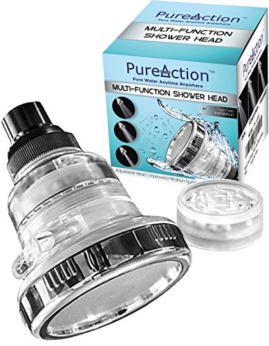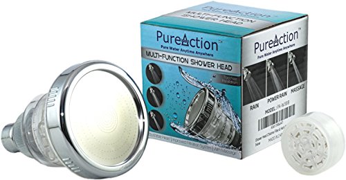 PureAction Filtered Shower Head - Filters Chlorine, Removes Hard Water, Prevents Hair & Skin Dryness - The Best Wall Mounted Showerhead with 3 High Pressure Flow/Spray Setting and 10000 Gallon Filter